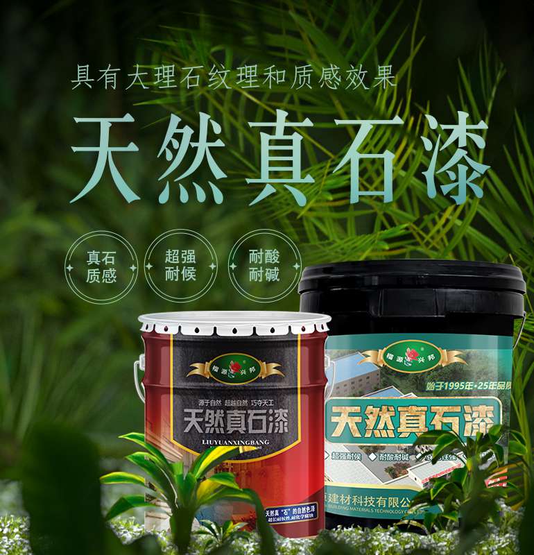 榴源興邦天然真石漆采用進口優(yōu)質(zhì)聚合物乳液、天然彩砂、進口助劑等原材料精心配制而成,具有超強耐候,耐老化,耐沾污,保色性強等特點,且還具有防火和阻燃性,使用年限可達10年以上,施工有大理石紋理的質(zhì)感效果,適用多種場合。