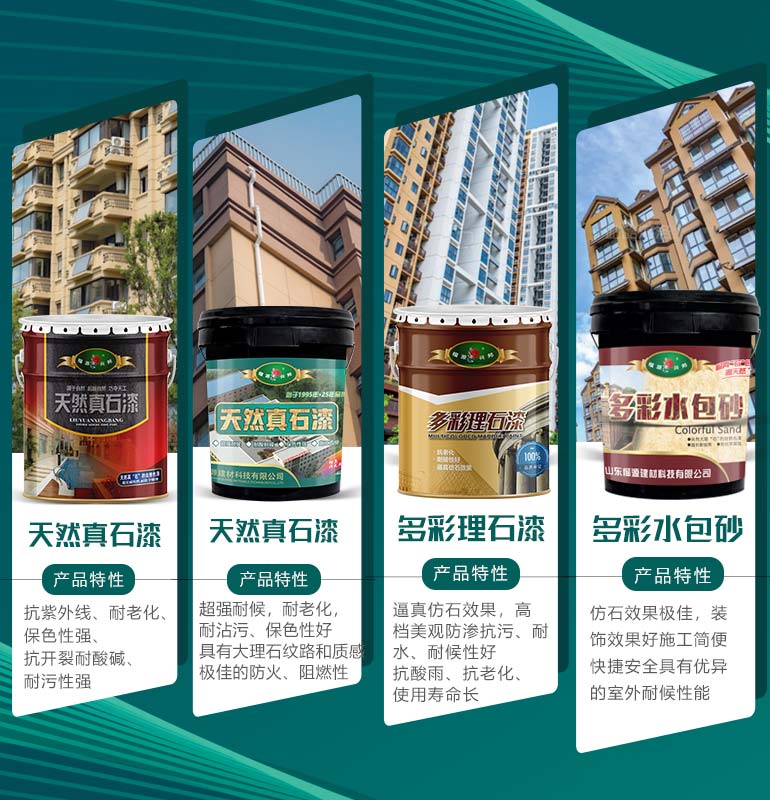 天然真石漆、多彩防石漆、多彩理石漆等水性建筑外墻系統(tǒng)適用于多種建筑場景。